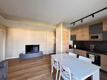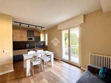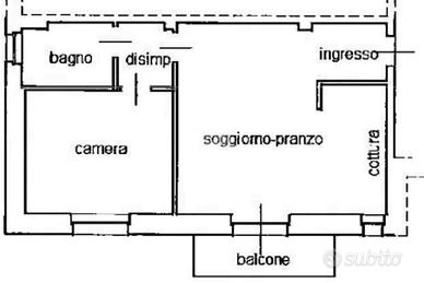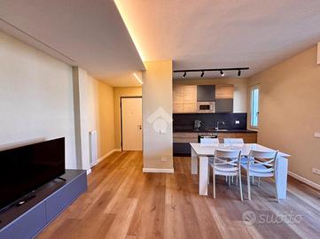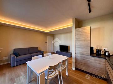 L'appartamento, rinnovato internamente nel 2024, si apre su un luminoso soggiorno con angolo cottura, dal quale si accede direttamente al balcone.