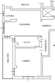 Ingresso che si apre, subito davanti, nella LUMINOSA zona living con cucina a vista, dalla quale tramite porta finestra, si accede al comodo ed ampio balcone della casa, che corre lungo tutto il perimetro della soluzione immobiliare. Tramite piccolo disimpegno accediamo alla zona notte composta da un'AMPIA camera da letto matrimoniale finestrata con accesso al balcone ed affaccio sulla seconda esposizione e, bagno finestrato dotato di vasca da bagno.