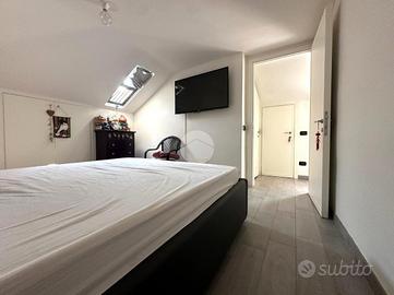 La camera matrimoniale è perfetta per riposare in totale confort ,dotata di finestra a soffitto, mentre il bagno funzionale è dotato di box doccia.