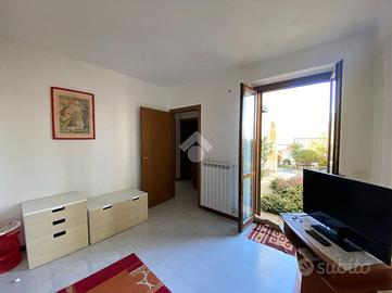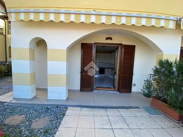 Appartamento al piano terra con giardino e parziale vista lago. La soluzione è inserita in un residence con piscina ben tenuto realizzato nel 2004 nella zona semi-centrale del paese. L'appartamento è caratterizzato dall'ampio giardino ed è composto dal soggiorno cottura, dalla camera e dal bagno. A disposizione del residence parcheggi liberi gratuiti.