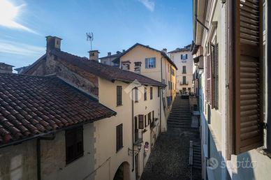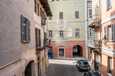 SALUZZO in via Monte di Pietà, nel basso centro storico cittadino, appartamento al secondo piano in stabile recentemente ristrutturato. Il fabbricato non è dotato di ascensore. L'alloggio è soppalcato e quindi formato da soggiorno con angolo cottura, bagno, ripostiglio e balcone al piano d'ingresso. Salendo tramite la scala di ferro si accede alla parte superiore che ospita la stanza da letto. Cantina di pertinenza. L'appartamento viene venduto già completo di cucina. Completa la proprietà il balconcino.