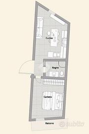 SALUZZO in Corso Piemonte, zona dell'ex 'Caserma Mario Musso', appartamento al primo piano primo in stabile privo di ascensore. Formato da soggiorno con angolo cottura, camera da letto, bagno e balcone. L'immobile viene locato arredato e sarà disponibile dal 01/02/2026. Riscaldamento autonomo e poche spese di gestione. 50€ di spese mensili che comprendono: spese condominiali (luce scale e pulizia scale), TARI, acqua.