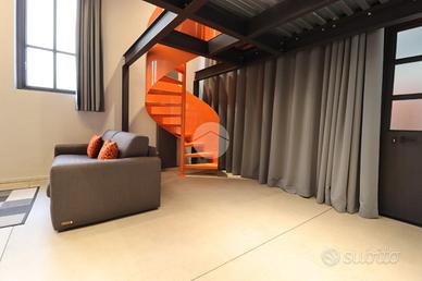 Situato in un piccolo contesto di soli quattro loft, l'immobile si trova all'interno di un ingresso condominiale ampio e curato, ideale come zona d'attesa o spazio di relax condiviso.
