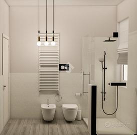 - Bagni moderni con sanitari sospesi piatto doccia e rivestiventi in gres porcellanato