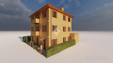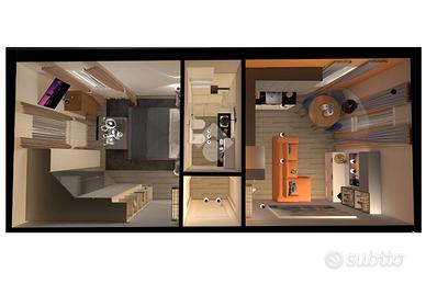 Appartamento al piano primo esposto a nord/ovest/sud; soggiorno con angolo cottura, camera matrimoniale, bagno con doccia e finestra. La proprietà include una piccola corte per rimessa bici in condivisione con l'appartamento adiacente.
