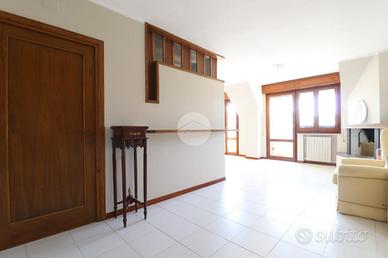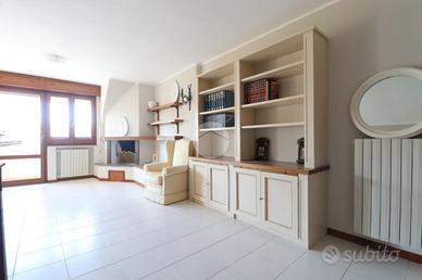 Varcata la soglia, si viene accolti da un ampio e luminoso soggiorno, impreziosito da un camino che dona calore all'ambiente. Da qui si accede ai due balconi che offrono una vista aperta sulla piazza, perfetti per godere dell'atmosfera del centro.