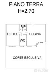 L'abitazione è composta da luminoso soggiorno con cucina a vista e accesso diretto alla corte privata, disbrigo, camera da letto matrimoniale e bagno finestrato.