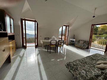 All'ingresso della soluzione, veniamo subito accolti da un ampio soggiorno con grazioso camino a legna e con triplo accesso al balcone di pertinenza dal quale si può ammirare un magnifico panorama sui Monti Picentini ma anche sul Golfo di Salerno.