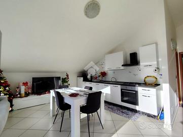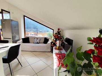 Graziosa mansardina di recente costruzione in parco chiuso. Accessoriata da due terrazzini lato giorno e lato notte, composta da ingresso cucina tinello, camera da letto e bagno. Completa di box auto e posto auto aggiuntivo assegnato in piazzle condominiale. Ottimo per coppie e/o singles. Possibilità di acquisto completamente ammobiliata. A due passi da Cancello Scalo.