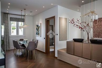 Cliccando le icone è possibile visionare un breve video riepilogativo, effettuare una visita virtuale dell'appartamento, scorrere diverse fotografie e render o visionare la planimetria che rappresenta la suddivisione interna.