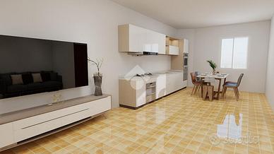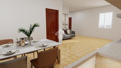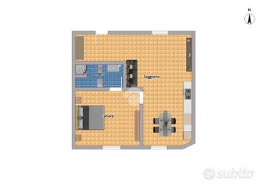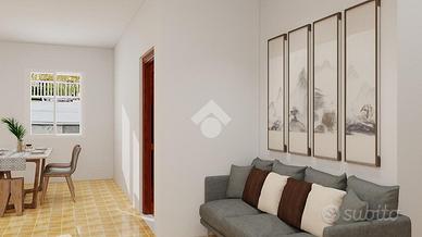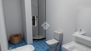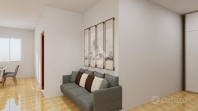 Per quanto riguarda l'appartamento invece, dall'ingresso si accede al soggiorno con cucina open space, dotato di due finestre, una con affaccio verso l'esterno ed una verso la corte interna. La camera da letto è matrimoniale, mentre in bagno è dotato di doccia.
