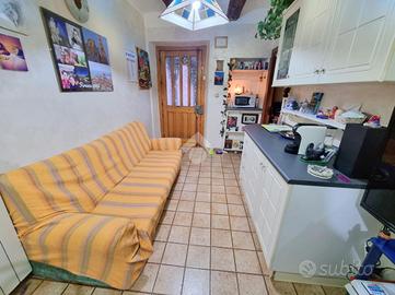 L'ingresso è autonomo ed è sul soggiorno con cucina a vista. Camera da letto matrimoniale e bagno con vasca.