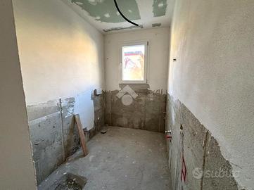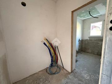 La soluzione sarà finita con pavimentazione in gres porcellanato, impianto di climatizzazione con pompa di calore, infissi con profilo in PVC e doppia vetrocamera, predisposizione full electric per la cucina (nessun attacco gas metano).