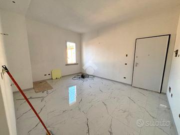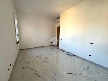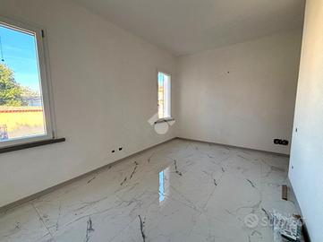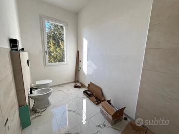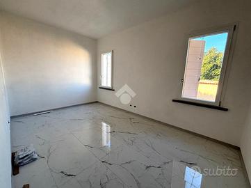 L'immobile viene rifinito con pavimentazione in gres effetto marmo, infissi con profilo in PVC e doppio vetrocamera, impianto di climatizzazione con pompa di calore, predisposizione full electric per la cucina (nessun attacco gas metano).