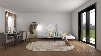 Un balcone offre uno spazio esterno privato, perfetto per momenti di relax. Il complesso residenziale è dotato di un'ampia area parcheggio garantendo comodità e praticità e di un parco attrezzato per i più piccoli.