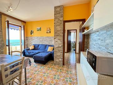 Aprite le finestre e lasciate entrare il profumo e il rumore del mare. Questo esclusivo appartamento fronte mare a San Lorenzo al Mare vi offre proprio questo privilegio: vivere la bellezza del Mediterraneo a portata di mano. Situato all'interno di un prestigioso complesso residenziale direttamente sulla spiaggia, l'alloggio si trova al quarto piano di una palazzina recentemente rinnovata, servita da ascensore e curata in ogni dettaglio. Il condominio, elegante e riservato, mette a disposizione dei suoi residenti due splendide piscine di acqua salata, una zona solarium, giardini curati con attenzione e un servizio di portineria che garantisce comfort e sicurezza durante tutto l'anno. L'ingresso conduce a un'ampia zona giorno, luminosa e accogliente, che si apre sul terrazzo tramite due grandi porte-finestra. Da qui, la vista è impareggiabile: il mare cristallino, le spiagge dorate e i tramonti che tingono il cielo di sfumature indimenticabili. Un luogo perfetto per pranzi all'aperto e cene romantiche sotto le stelle. La zona notte è composta da una spaziosa camera matrimoniale, anch'essa affacciata sul terrazzo: un'esperienza unica, addormentarsi e risvegliarsi con lo sguardo rivolto al mare. Completa la proprietà un bagno finestrato con doccia. L a doppia esposizione a sud e ovest regala luce e calore per tutto il giorno, oltre che una piacevole areazione naturale. Con spese condominiali di circa € 2.400 l'anno, comprensive di tutti i servizi esclusivi, questa soluzione rappresenta un'occasione rara: vivere direttamente sul mare della Riviera Ligure, in un contesto elegante, sicuro e recentemente rinnovato. Un rifugio da sogno, dove ogni giorno è una vacanza.