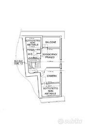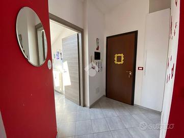 L'alloggio è un bilocale di ampia metratura, con accesso da portoncino blindato direttamente sulla zona giorno con cucina a vista, servita da un luminoso terrazzo, camera da letto con cabina armadio e bagno finestrato con box doccia in muratura.