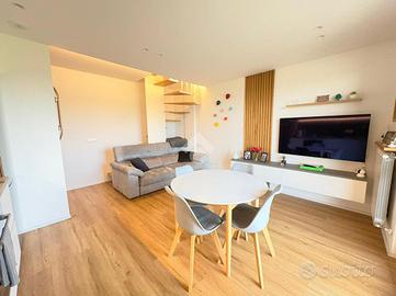 A San Maurizio Canavese, in frazione Malanghero, in zona residenziale e circondata dal verde, appartamento bilivello di recente costruzione.