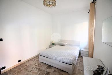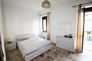 La camera da letto è di generose dimensioni con accesso al secondo balcone della soluzione.