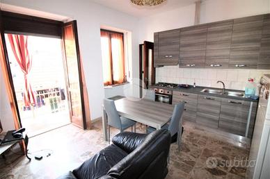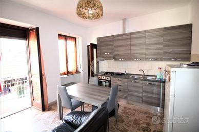 Il soggiorno con parete cottura lineare è provvisto oltre che di finestra di porta finestra a condurre al primo balcone.