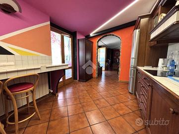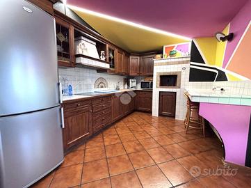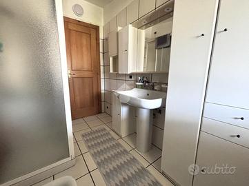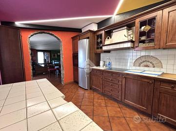 L'appartamento ha cucina separata, bagno con finestra e aria condizionata per mantenere la casa fresca d'estate e un camino a pellet per i mesi freddi.