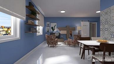 L'immobile è un appartamento sviluppato ad un comodo primo piano, all'interno di una palazzina ubicata a San Pietro in Casale, nel cuore del paese. La porta d'ingresso si apre su un disimpegno che distribuisce gli ambienti della casa. La zona giorno è organizzata in un openspace con la cucina sviluppata in un angolo, a vista. La camera da letto è matrimoniale. I servizi sono dotati di un antibagno ed è presente il ripostiglio. Il riscaldamento è autonomo ed è presente l'impianto di aria condizionata. Le immagini allegate sono render che ipotizzano un moderno progetto architettonico. L'abitazione si presenta, comuqnue, in buono stato, con rifiniture di tipo rustico.