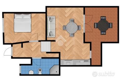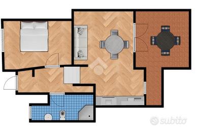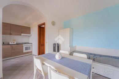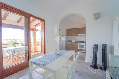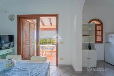 L'ingresso si apre sul disimpegno che conduce alla zona giorno, ampia e luminosa, con angolo cottura a vista. Dalla zona giorno, grazie alla porta finestra, si accede alla veranda abitabile, ideale per pranzi e cene in compagnia di amici e parenti godendo di una suggestiva vista Tavolara. Completa l'interno la camera matrimoniale e il bagno finestrato con doccia