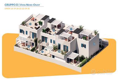 Ciascun appartamento è composto da una spaziosa zona giorno con un ampio open space che include cucina e soggiorno, e una zona notte con una camera da letto e un bagno. L'unità si sviluppa su un unico livello al piano terra e dispone di una pertinenza esterna. La costruzione è realizzata secondo i più recenti standard edilizi, garantendo elevate prestazioni energetiche.