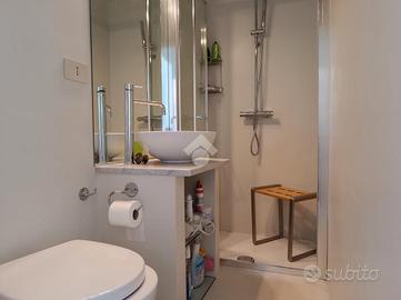 L'ingresso si apre direttamente sulla zona giorno con angolo cottura, uno spazio funzionale e luminoso che conduce all'uscita sul balcone con piacevole vista mare, perfetto per momenti di relax all'aperto. Proseguendo troviamo la camera matrimoniale e il bagno con doccia.