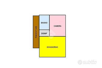 L'appartamento, al secondo piano, è composto da soggiorno con angolo cottura e sfogo nel balcone; attraverso il disimpegno si accede alla zona notte con parquet, dove vi sono una camera da letto matrimoniale ed il bagno con doccia.