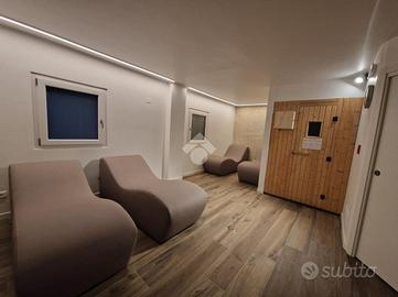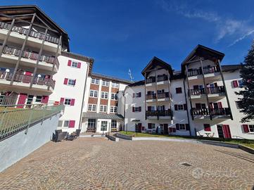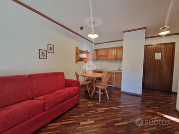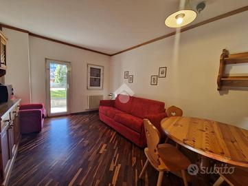 La soluzione si trova al piano terra e si presenta come un comodo bilocale, ideale per chi desidera un punto d'appoggio pratico e ben servito. Il complesso offre vari comfort tra cui una spa con sauna, perfetta per rilassarsi dopo una giornata in montagna, e una zona bar/ristorante a disposizione dei residenti.