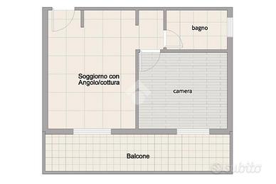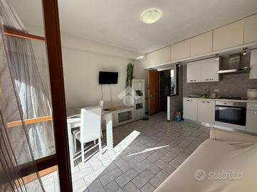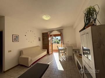 Internamente l'immobile conta circa 45 mq, composto da soggiorno con angolo cottura ed accesso al balcone di 15 mq, ottimo per trascorrere i momenti di relax al ritorno dal mare e soprattutto sfruttarlo durante i pasti, data la sua esposizione pieno SUD, disimpegno da cui si raggiunge il bagno con box doccia finestrato e la camera padronale.