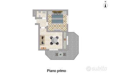 Un piccolo ingresso ci disimpegna a tutte le stanze della casa; il soggiorno con angolo cottura è reso luminoso dall'ampia portafinestra che accede all'esterno, la camera da letto con armadio a ponte rende gli spazi più fruibili, il bagno è già dotato di box doccia ed infine il terrazzo angolare da cui si gode di vista mare. Posto auto condominiale.