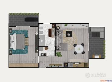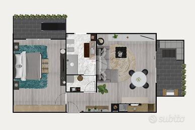 I pavimenti saranno eseguiti con piastrelle in ceramica mentre è possibile, per la zona notte, pavimentare con listelli di parquet; tutti gli zoccolini saranno in legno di color bianco.