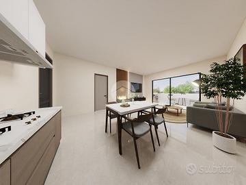 Santo Stefano Ticino: all'interno di un elegante quartiere residenziale. In posizione strategica per raggiungere, comodamente a piedi, sia il Centro Paese che la Stazione Ferroviaria. In contesto abitativo di nuova concezione in Classe Energetica 'A', totalmente privo di barriere architettoniche, con ascensore fin dal piano cantine. All'ingresso veniamo accolti in soggiorno con una pratica ed angolare cucina a vista. La zona giorno, grazie ad un'ampia porta finestra ad anta scorrevole, beneficia di un godibile quanto funzionale terrazzo, particolarmente sfruttabile nella bella stagione. Il disimpegno, ideale per poter alloggiare un pratico armadio, ci conduce alla zona notte; qui troviamo una camera matrimoniale facilmente arredabile ed un bagno dotato di sanitari sospesi, un generoso piatto doccia ed un termoarredo elettrico. La totale assenza di gas e di fiamme libere all'interno dell'immobile, consente una più sicura e serena vivibilità. Tutte le finiture interne sono di ultima generazione e con possibilità di personalizzazione. I pavimenti saranno eseguiti con piastrelle in ceramica mentre è possibile, per la zona notte, pavimentare con listelli di parquet; tutti gli zoccolini saranno in legno di color bianco. Le porte di primo ingresso saranno di tipo blindato rivestite con pannello interno laminatino colore bianco mentre quello esterno sarà di colore grigio perla. Le porte interne saranno cieche in laminatino e di colore bianco. Tutti i serramenti, finestre e portefinestre, saranno del tipo monoblocco ed in color girgio perla; le portefinestre dei soggiorni, saranno dotate di apertura ad ante scorrevoli alzanti mentre le altre finestre e portefinestre saranno provviste di ante dotate di doppia apertura (battente + vasistas). L'impianto di riscaldamento, raffrescamento e di produzione acqua calda, sarà realizzato con pompa di calore elettrica in abbinamento alla caldaia. Gli impianti saranno di tipo centralizzato e dotati di contacalorie, per ogni s