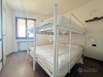 Grangesises - A pochi minuti di macchina da Sestriere, in una borgata caratteristica in posizione panoramica e tranquilla, proponiamo appartamento ristrutturato al piano terreno con ampio terrazzo privato e vista spettacolare. L'entrata all'appartamento avviene direttamente dal terrazzo sul soggiorno, reso luminoso dall'ampia finestra. La zona giorno si presenta con una cucina lineare e un tavolo in legno rustico. Nel disimpegno trova spazio il boiler elettrico di ultima generazione e la lavatrice. La camera da letto, dotata di finestra, è arredata con un letto matrimoniale a castello e un letto a castello a scomparsa. Infine il bagno è dotato di doccia con bagno-turco e bidet. Completa la soluzione l'ampio box auto soppalcato .