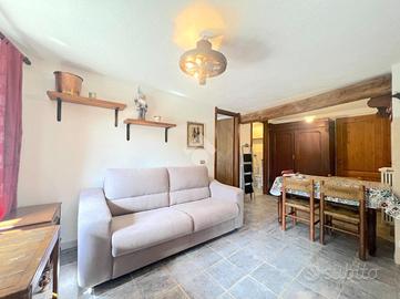 Proponiamo in affitto per la stagione invernale ampio bilocale al primo piano. L'appartamento è molto luminoso grazie alla presenza di finestre e porta finestra esposte a sud. L'ingresso avviene sull'ampio soggiorno con divano letto matrimoniale e cucina lineare a vista. La camera da letto è finestrata ed è dotata di letto matrimoniale. Infine il bagno è dotato sia di vasca con doccia che di lavatrice.