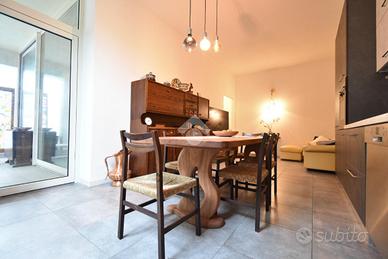 Situato al piano rialzato di un edificio moderno dotato di pannelli fotovoltaici, impianto solare termico oltre ad impianto di areazione geotermica per il raffrescamento dell'aria. L'immobile, dotato di ascensore, è stato costruito nel 2017, offre un ingresso indipendente su loggia di proprietà, che garantisce privacy e comodità.