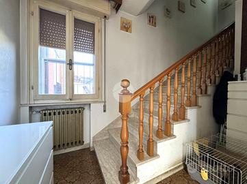 Accedendo dalla corte, veniamo accolti da un portico di 10mq con l'accesso per l'appartamento.