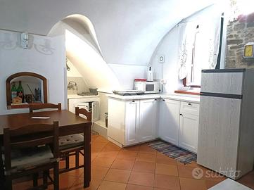 L'appartamento è nel centro storico di Seborga, perfetto per chi cerca un rifugio tranquillo con un tocco di storia. Situato tra i suggestivi carruggi e le pittoresche piazzette medievali. Con un ingresso indipendente, l'appartamento si apre su una zona giorno accogliente, composta da un soggiorno e un cucinino funzionale. Al piano superiore, collegato da una scala interna, troviamo la camera da letto matrimoniale perfetta per rilassarsi dopo una giornata trascorsa esplorando i vicini ristoranti, bar e negozi. Il bagno è dotato di una comoda doccia e gli armadi a muro offrono ampio spazio per riporre gli effetti personali. L'immobile non prevede spese condominiali, garantendo così costi di gestione contenuti. L'impianto elettrico è stato recentemente rifatto e due termoventilatori caldo/freddo assicurano il comfort durante tutto l'anno