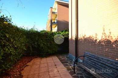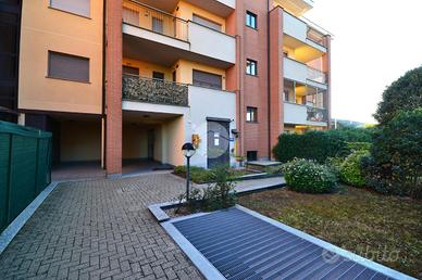 APPARTAMENTO LOCATO BILOCALE CON GIARDINO - Inserito in una palazzina posizionata in una tranquilla zona residenziale del centro paese, appartamento valorizzato dalla presenza del giardino disposto su due lati dell'abitazione. Il complesso di recente costruzione è stato edificato in classe energetica B e si presenta in ottimo stato di manutenzione. L'ingresso si apre direttamente nella moderna zona living con cucina a vista in affaccio sulla veranda, ideale per essere arredata con mobili da esterno e sul giardino di 60 mq circa. Il disimpegno notte conduce alla camera da letto e al bagno dotato di vasca. La presenza del riscaldamento a pavimento permette di poter sfruttare interamente tutte le pareti interne. Come accessorio è compreso nel prezzo il climatizzatore. L'immobile è altresì dotato di inferriate e zanzariere. Cantina e box doppio inclusi nel prezzo. CERTIFICAZIONE ENERGETICA IN FASE DI RILASCIO