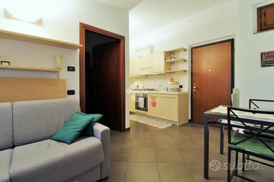 SOLO PERSONE REFERENZIATE Bilocale posto in palazzina di recente costruzione privo di barriere architettoniche. La soluzione posta al terzo piano, risulta essere ideale per i clienti che ricercano la comodità degli spazi interni e le basse spese condominiali. Entrando dalla porta blindata si accede alla zona living di forma rettangolare dotata di cucina a vista ed uscita sul comodo terrazzino. Il disimpegno ci conduce nella zona notte dove troviamo il servizio finestrato dotato di vasca e la camera matrimoniale che risulta essere di forma rettangolare e di comode dimensioni. L'appartamento è dotato di infissi in legno doppio vetro, riscaldamento autonomo, impianto di aria condizionata e completo di arredamento. L'immobile è completo di un comodo box-autorimessa. Per appuntamenti i nostri incaricati sono disponibili dal lunedì al venerdì dalle ore 9.00 alle 12.30 e dalle 14.30 alle 20.00 e il sabato dalle 9.00 alle 12.30 e dalle 14:30 alle 19:00. A vostra disposizione uno staff di consulenza creditizia in grado di proporvi il mutuo o il finanziamento più adatto alle vostre possibilità. Contattateci per fissare un incontro gratuito nei nostri uffici. Ogni agenzia ha un proprio titolare ed è autonoma.
