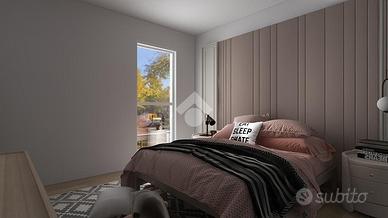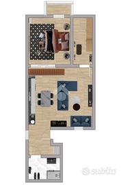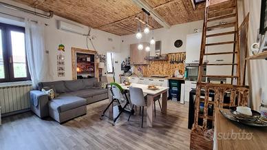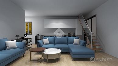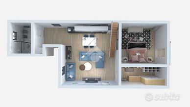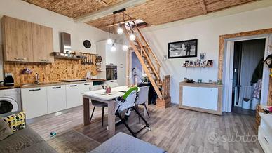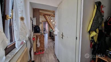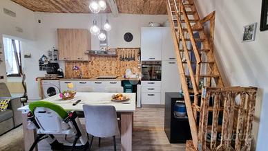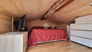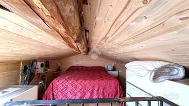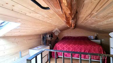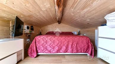 Entrando troviamo un soggiorno open space con angolo cottura, una camera con accesso sul balcone, un bagno con doccia e finestra e una cabina armadio. Tramite una scala in legno si accede alla soffitta con lucernaio.