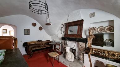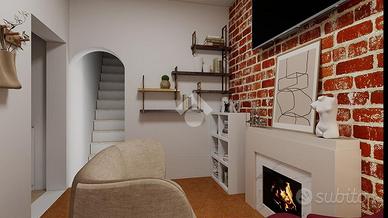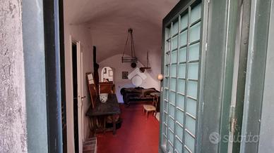 Al piano terra troviamo un soggiorno con camino, un bagno cieco con doccia e un cucinino. Tramite un arco troviamo la sala da pranzo e la scala che porta al piano primo.