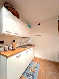 L'ingresso all'appartamento avviene direttamente sul soggiorno dove troviamo una cucina di tipo lineare dotata di piastra elettrica. La camera da letto è munita di tre letti singoli. Il bagno è di ampie dimensioni con box doccia. L'appartamento grazie alla presenza di un divano letto matrimoniale posto nel soggiorno può ospitare fino a 5 persone.