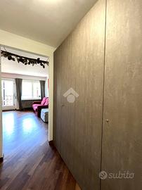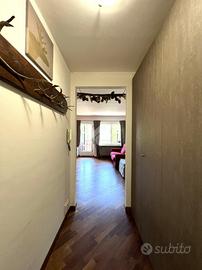 L'ingresso nell'appartamento avviene attraverso un corridoio accogliente e funzionale, dotato di un'ampia e pratica cabina armadio. Questo spazio conduce alla zona giorno, la quale brilla di luce naturale grazie a una generosa finestra e una porta finestra che si aprono verso il terrazzo.