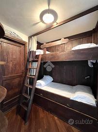La cucina, in uno stile moderno ed elegante, è di notevoli dimensioni e presenta un fornello a gas per le tue esigenze culinarie. Una porta scorrevole in legno separa con eleganza la zona giorno dalla zona notte. Qui troverai un ampio e confortevole letto a castello in legno, perfetto per gli ospiti, mentre la camera adiacente, una spaziosa camera matrimoniale, beneficia di una grande finestra che inonda la stanza di luce naturale.