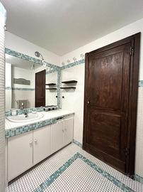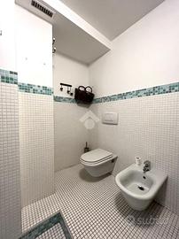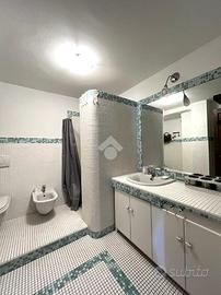 Il bagno, rifinito con piastrelle che arrivano fino al soffitto, ospita una doccia ampia e moderna, garantendo un luogo rilassante per prendersi cura di sé.