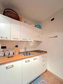 L'ingresso all'appartamento avviene direttamente sul soggiorno dove troviamo una cucina di tipo lineare dotata di piastra elettrica. La camera da letto è munita di tre letti singoli. Il bagno è di ampie dimensioni con box doccia. L'appartamento grazie alla presenza di un divano letto matrimoniale posto nel soggiorno può ospitare fino a 5 persone.