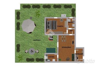 L'immobile si compone di pratico ingresso, luminoso soggiorno con accesso al giardino privato, cucinotto finestrato, camera da letto matrimoniale e servizio igienico recentemente ristrutturato.